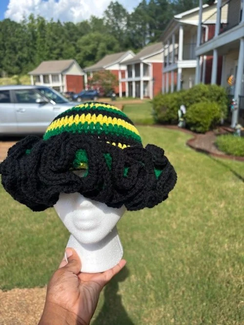 Bunny Ear Ski Mask $45.00 Ski Mask $40.00 Rebel Ruffle Sun Hat $40.00 Rebs Ruffle Hat $45.00 Cat Eared Beanie $35.00 Cat Eared Ruffle Beanie $40.00 Fairy Ruffle Hat $30.00 Care Bear Ruffle Hat $45.00 Camouflage Sun Hat $25.00 Jamaican Ruffle Hat $40.00 Sunflower Sun Hat $35.00 Juneteenth Ruffle Hat $40.00 Trimmed Ruffle Hat $35.00 Ruffled Scrunchie $15.00 Solid Ruffle Hat $25.00 Peek-a-Boo Ruffle Hat $40.00 Striped Ruffle Hat $30.00 Solid Colored Beanie $35.00 Tie-Dye Ruffle Hat $30.00
